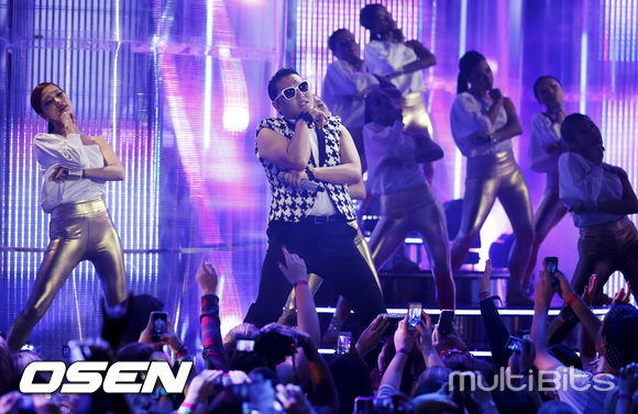 [OSEN/WENN 특약]가수 싸이가 지난 16일(현지시간) 캐나다 대표 음악시상식 MMVA에서 '젠틀맨'의 시건방춤을 선보이고 있다.