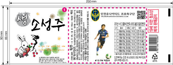 인천 선수들의 사진이 라벨에 실린 인천의 대표 막걸리인 ‘소성주’는 이달 중순부터 판매가 시작되고, 오는 26일 인천축구전용경기장에서 열리는 K리그 클래식 14라운드 홈경기 당일 경기장 매점에서 판매될 예정이다.