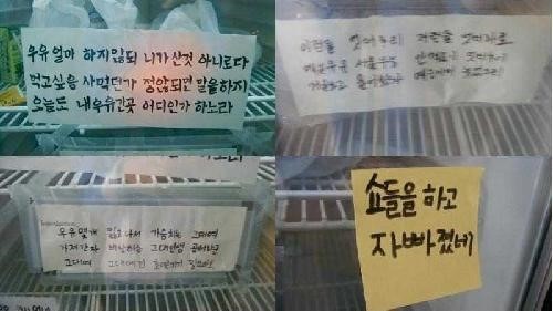 공개된 사진에는 공용냉장고 속 쪽지가 나오는데 고시생들의 설전이 이어진다. 우유 도둑을 피하기 위한 고시생들의 애절한 글귀가 웃음을 자아낸다.