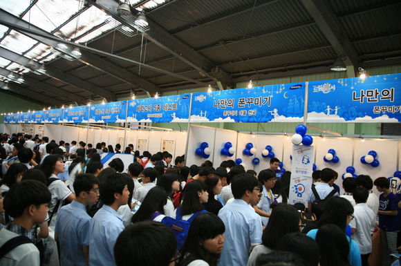 '전시와 체험행사'에서는 본인의 적성을 알아볼 수 있는 '자기이해관', 다양한 직업을 체험해보는 '직업체험관', 전문가, 삼성전자 임직원, 대학생들이 멘토로 나서는 '진로학습상담관' 등의 코너가 마련됐다. 이어 '드림 토크 콘서트'에서는 개그맨 김영철, EBS '공부의 왕도'에 출연했던 대학생 정대준씨 등이 강사로 나서 희망의 메시지를 나눴다.
