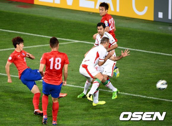 18일 오후 울산 문수축구경기장에서 진행된 2014 브라질월드컵 아시아지역 최종예선 A조 8차전 대한민국과 이란의 경기 전반전 손흥민의 결정적인 슈팅이 골문을 벗어나고 있다.