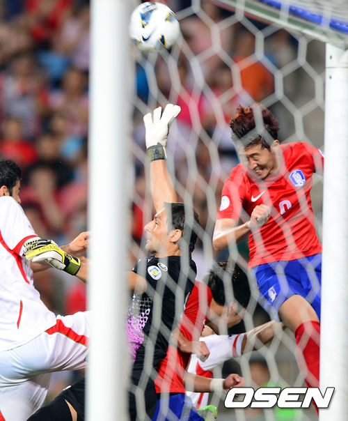 18일 오후 울산 문수축구경기장에서 진행된 2014 브라질월드컵 아시아지역 최종예선 A조 8차전 대한민국과 이란의 경기 전반 손흥민이 헤딩슛을 시도하고 있다.