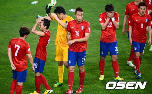 8회 연속 진출에도 이란에 패해 태극전사들이 아쉬워 하고 있다. /spjj@osen.co.kr