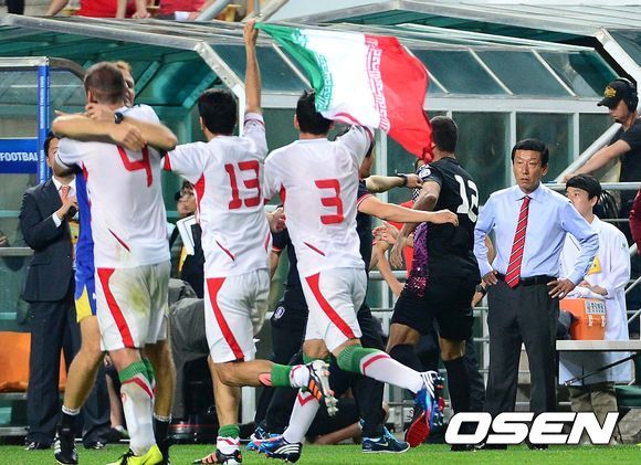 이란 선수들이 지나친 세리머니를 하면서 몸싸움도 빚어졌다. 이란의 골키퍼 소사 마카니(12번)는 최강희 감독 앞에서 몸싸움을 벌이다 코칭스태프들의 제지를 받기도 했다.