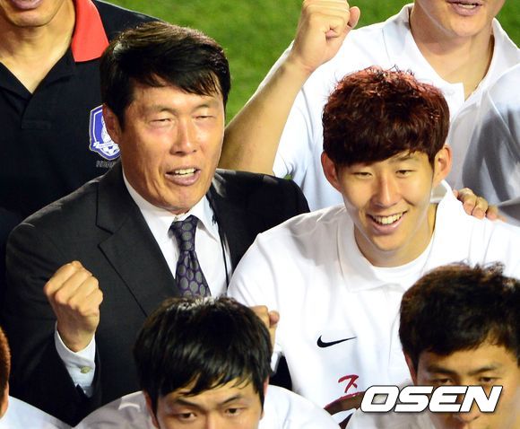 차범근 전 감독과 손흥민이 파이팅을 외치고 있다. /spjj@osen.co.kr