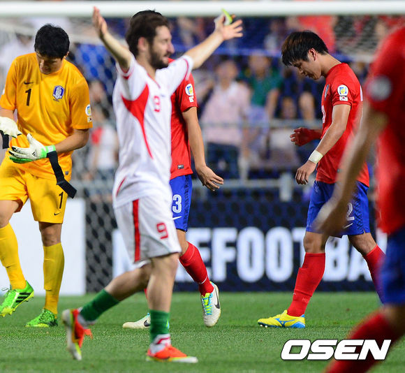 한국은 18일 울산 문수경기장에서 열린 2014 브라질월드컵 아시아 최종예선에서 이란에 0-1로 패했다. 후반 15분 구찬네자드에게 결승골을 내줬다. 이날 한국은 이동국(34, 전북)을 비롯해 김신욱(25, 울산), 손흥민(21, 함부르크), 지동원(22, 아우크스부르크) 등 공격수를 총동원했다. 반드시 이란을 꺾고 승리로 정상에 서겠다는 의지였다. 하지만 후반 들어 수비에서 허점을 보이며 결승점을 내주고 말았다.