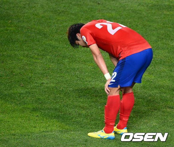 패배의 빌미를 제공한 김영권이 아쉬움에 고개를 떨구고 있다. /spjj@osen.co.kr
