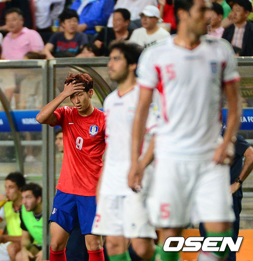 한국은 18일 울산 문수경기장에서 열린 2014 브라질월드컵 아시아 최종예선에서 이란에 0-1로 패했다. 후반 15분 구찬네자드에게 결승골을 내줬다. 이날 한국은 이동국(34, 전북)을 비롯해 김신욱(25, 울산), 손흥민(21, 함부르크), 지동원(22, 아우크스부르크) 등 공격수를 총동원했다. 반드시 이란을 꺾고 승리로 정상에 서겠다는 의지였다. 하지만 후반 들어 수비에서 허점을 보이며 결승점을 내주고 말았다.