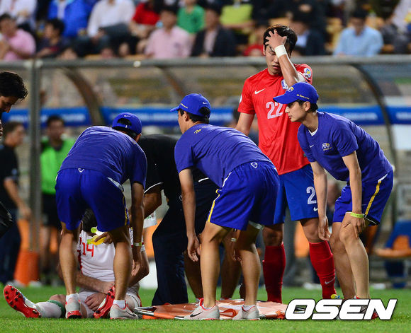 후반전 이란 선수가 그라운드에 넘어지자 한국 김영권이 아쉬운 표정을 짓고 있다. /sunday@osen.co.kr