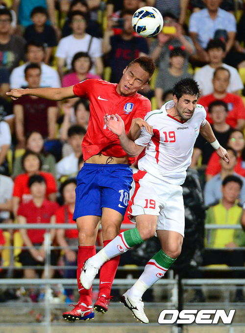 전반전 한국 김신욱이 이란 수비와 공중볼 다툼을 하고 있다. /sunday@osen.co.kr