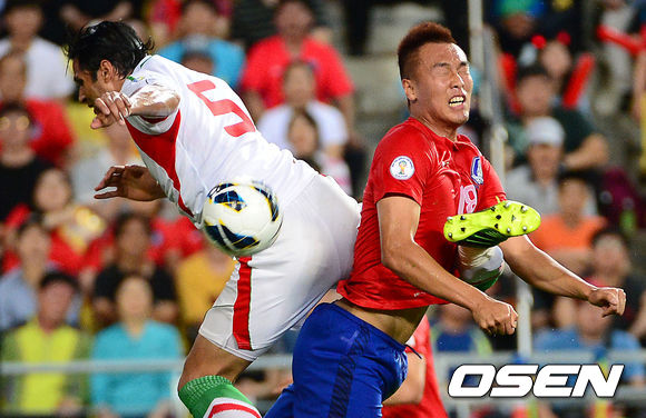 전반전 한국 김신욱이 이란 수비와 공중볼 다툼을 하고 있다. /sunday@osen.co.kr