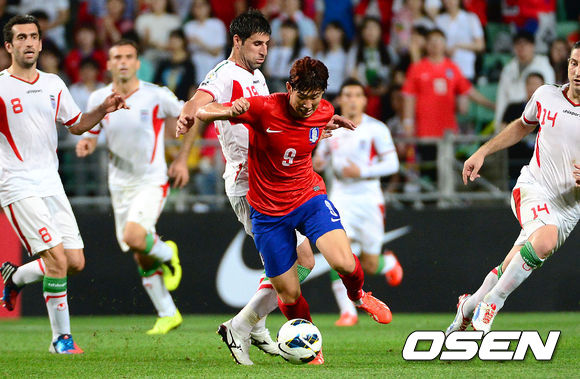 한국은 18일 울산 문수경기장에서 열린 2014 브라질월드컵 아시아 최종예선에서 이란에 0-1로 패했다. 후반 15분 구찬네자드에게 결승골을 내줬다. 이날 한국은 이동국(34, 전북)을 비롯해 김신욱(25, 울산), 손흥민(21, 함부르크), 지동원(22, 아우크스부르크) 등 공격수를 총동원했다. 반드시 이란을 꺾고 승리로 정상에 서겠다는 의지였다. 하지만 후반 들어 수비에서 허점을 보이며 결승점을 내주고 말았다.