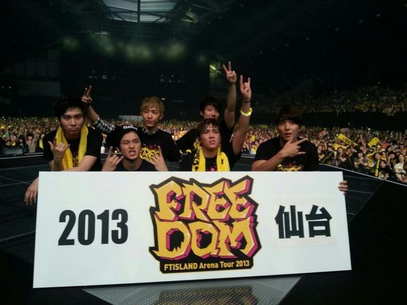 멤버 이홍기는 최근 자신의 트위터에 "행복했다. 정말 고맙다"며 'FT아일랜드 아레나 투어 2013-프리덤(FREEDOM)'의 첫 공연인 미야기 센다이 무대의 사진을 게재했다.