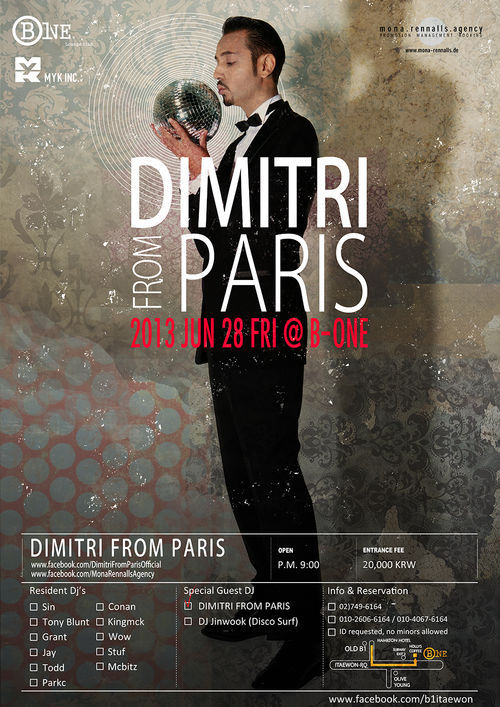 프랑스 출신의 디스코 하우스 가수 디미트리 프롬 파리스(Dimitri from paris)가 내한 공연을 갖는다.