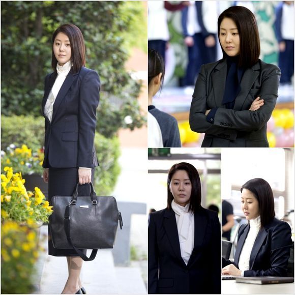 트레이드 마크처럼 들고 다니는 검은색 가방이 유일한 액세서리인 셈. 블랙과 회색 정장을 기본으로 화이트와 남색 블라우스 만을 번갈아 착용하는, 유일무이한 ‘여왕의 패션’을 통해 폭발적인 연기력을 드러낼 전망.