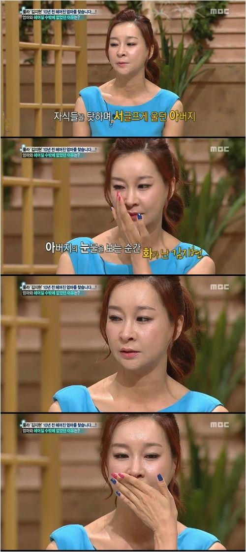이날 김지현은 어머니에 대한 미안한 감정을 이야기 하며 눈물을 펑펑 흘렸다. 그는 “어머니와 계속 만나고 싶었는데 연락이 안됐다”면서 “지금이라도 어머니를 찾고 싶다”고 방송을 통해 가족사를 털어놓는 이유에 대해 설명했다.