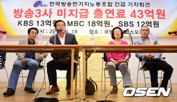 한국방송연기자노동조합(이하 한연노)이 19일 오후 서울 여의도 CCMM 코스모스홀에서 종영한 MBC 주말드라마 '아들녀석들'의 출연료 미지급 사태와 관련해서 긴급 기자회견을 개최했다.