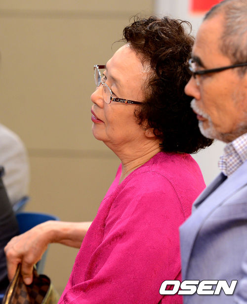 배우 나문희가 안타까운 표정으로 기자회견을 하고 있다.