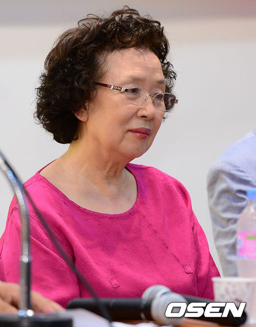 배우 나문희가 안타까운 표정으로 기자회견을 하고 있다.