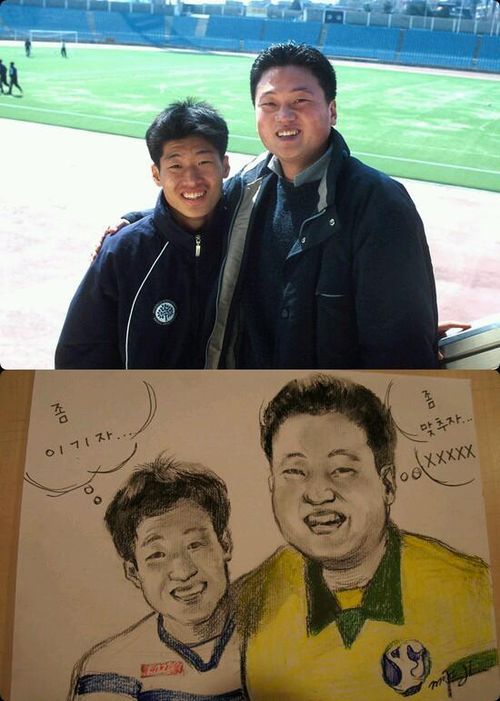 사진에는 박지성과 SBS ESPN 축구해설위원 박문성의 캐리커처가 그려져 있다. 미대 출신 답게 인물의 특징을 잘 집어 표현해낸 김민지의 그림 실력이 보는 이들을 감탄케 한다.