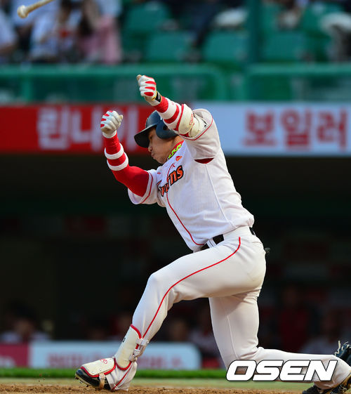 19일 오후 인천 문학구장에서 '2013 한국야쿠르트 세븐 프로야구' SK 와이번스 대 삼성 라이온즈의 경기가 열렸다. 5회말 SK 공격 1사 주자없는 상황 김강민이 헛스윙을 하며 배트를 손에서 놓치고 있다.