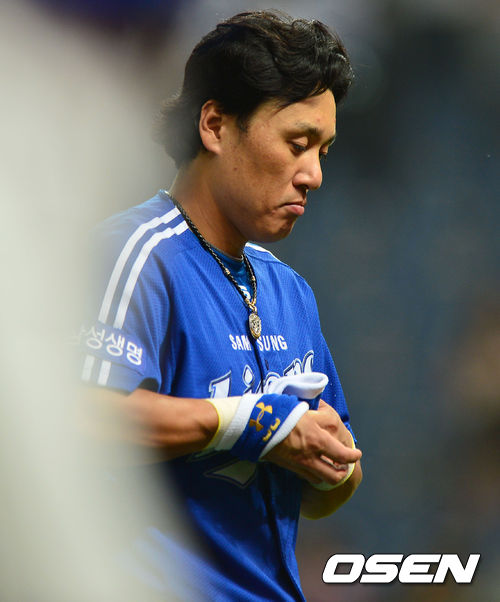 현재 통산 351개 홈런으로 개인 최다 기록 갱신에 홈런 1개만을 남긴 삼성 이승엽이 아쉬운 표정으로 경기장을 나서고 있다. /dreamer@osen.co.kr