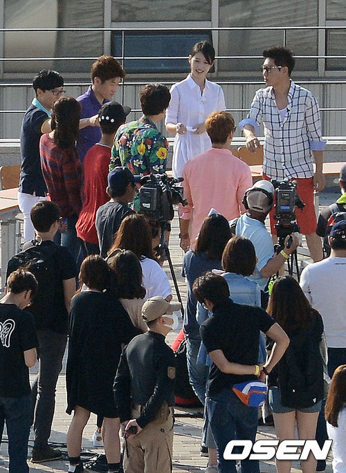 이날 박지성은 보라색 상의를 입고 '런닝맨'의 유재석, 이광수, 그룹 에프엑스의 설리 등과 함께 한 시간 반 이상 옥상에서 진행된 촬영에 임했다. 더운 날씨에도 불구, 박지성 특유의 순박한 미소가 눈길을 끌었으며 '런닝맨'을 함께 하는 출연진 역시 시종일관 화기애애한 분위기에서 촬영을 이어갔다.