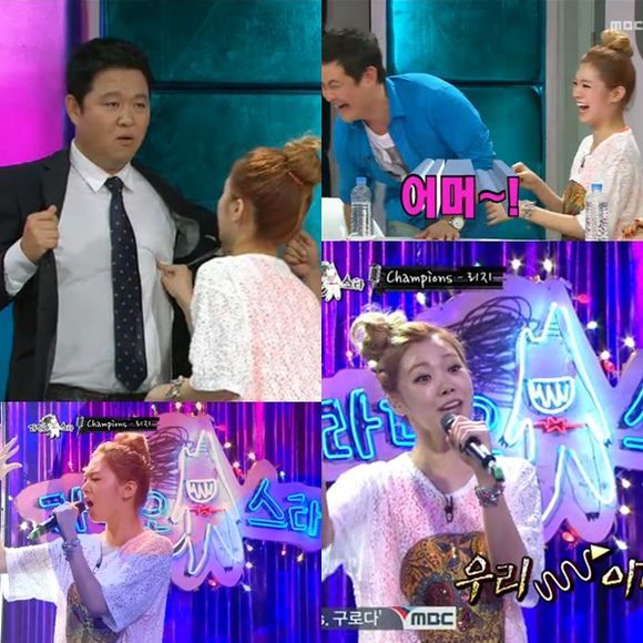 특히 리지는 조수미의 ‘챔피언스’ 열창으로 예능감의 정점을 찍었다. 리지는 “초등학교 때 성악을 조금 했다”고 고백, MC들이 노래를 요청하자 무대에 올라 ‘챔피언스’를 불렀다. 초반부터 불안한 음정에서 시작한 리지는 높은 음이 나오자 절규에 가까운 소리를 내며 꿋꿋이 노래를 불러 스튜디오를 초토화시켰다.