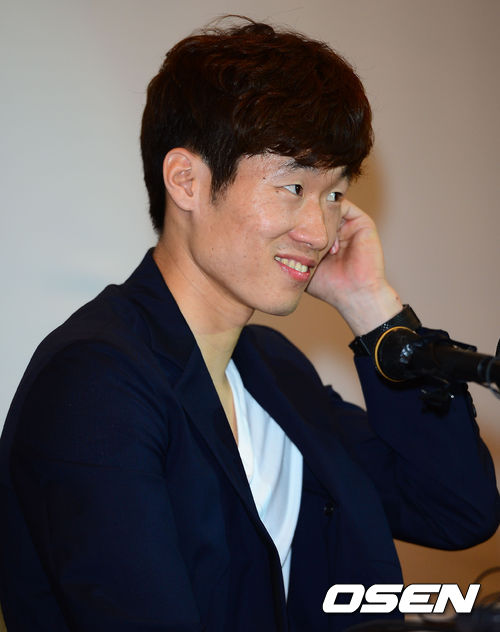 20일 오전 수원월드컵경기장 컨벤션 웨딩홀에서 열린 박지성 기자회견 및 JS파운데이션 재능학생 후원금 전달식에서 박지성이 질문에 답하며 쑥스러워 하고 있다.