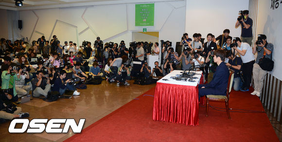 20일 오전 수원월드컵경기장 컨벤션 웨딩홀에서 열린 박지성 기자회견 및 JS파운데이션 재능학생 후원금 전달식에서 박지성이 질문에 답하고 있다.