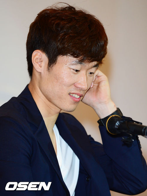 20일 오전 수원월드컵경기장 컨벤션 웨딩홀에서 열린 박지성 기자회견 및 JS파운데이션 재능학생 후원금 전달식에서 박지성이 질문에 답을 하며 머리를 긁적이고 있다.