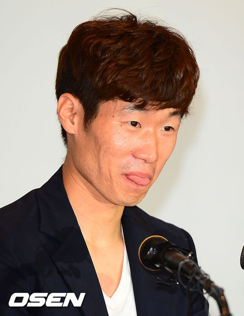 20일 오전 수원월드컵경기장 컨벤션 웨딩홀에서 열린 박지성 기자회견 및 JS파운데이션 재능학생 후원금 전달식에서 박지성이 기자회견 중 입술을 적시고 있다.