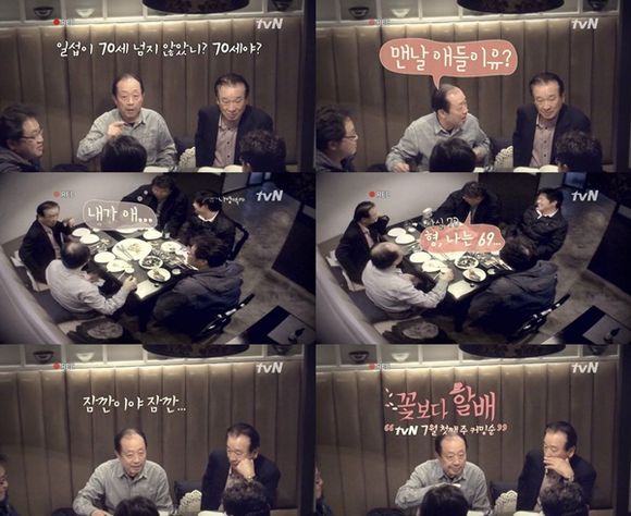 공개된 영상에는 다 같이 모여 정답게 이야기꽃을 피우는 배우 이순재, 신구, 백일섭, 나영석 PD의 모습이 담겨있다. 신구가 막내 백일섭에게 “일섭이 70세 넘지 않았나?”라고 물었고, 이에 이순재가 믿지 못하자 “맨날 애들이냐”고 묻는 모습이다. 백일섭은 신구의 말을 듣더니 “형, 나는 69세다”라고 수줍게 말하며 애교를 선보여 눈길을 끌었다. 이런 백일섭에게 신구는 “잠깐이다. 잠깐”이라는 짧고 굵은 명언을 들려준다.