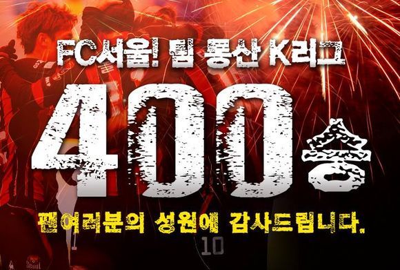 400승 축하와 함께 401번째 승리의 무대가 될 이번 홈경기 티켓은 FC서울 홈페이지(www.fcseoul.com)와 인터파크를 통해 예매할 수 있으며, 자세한 사항은 공식 페이스북과 트위터(@FCSEOUL)에서 확인할 수 있다.
