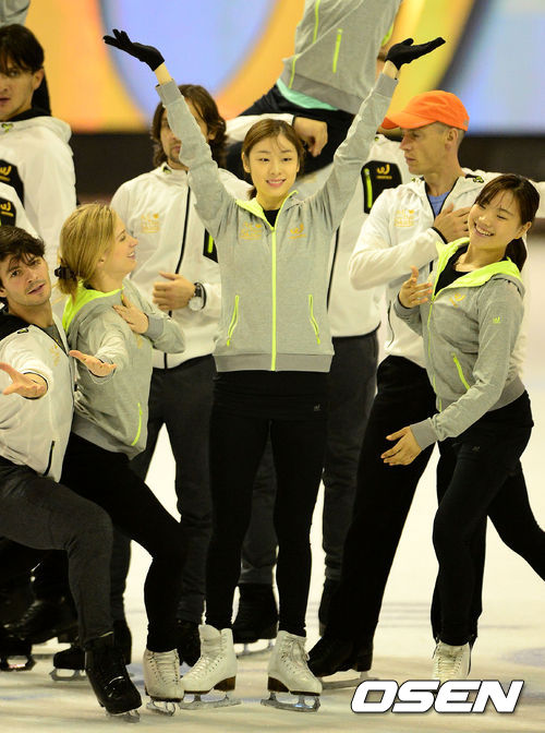 기자회견에 앞서 김연아와 동료선수들이 리허설을 하고 있다.