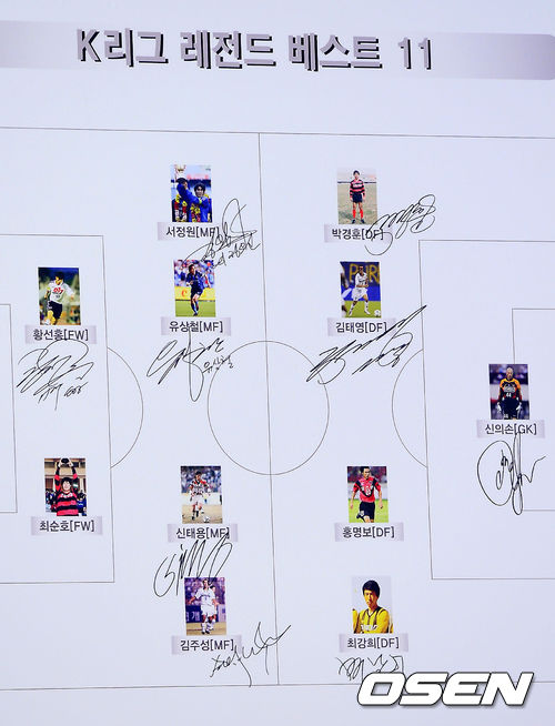 사진은 레전드 베스트 11에 선정된 선수들의 사인.