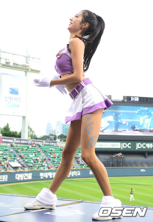 19일 오후 서울 잠실구장에서 열린 '2013 한국야쿠르트 세븐 프로야구' 두산 베어스와 롯데 자이언츠의 경기, 치어리더 박기량이 공연을 펼치고 있다.