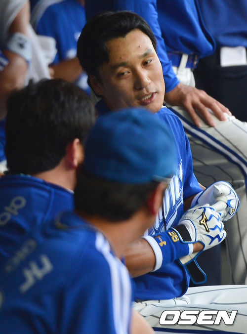3회초 1사 1, 3루 상황 이승엽이 좌월 3점포를 날리고 더그아웃으로 들어와 진갑용과 대화를 나누고 있다./dreamer@osen.co.kr