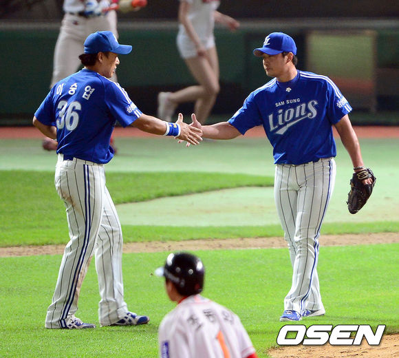 경기 종료 후 삼성 오승환과 이승엽이 악수를 나누고 있다. / youngrae@osen.co.kr