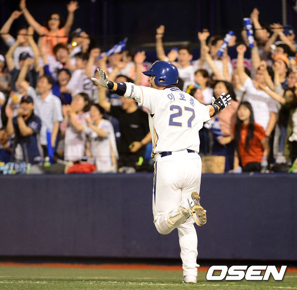 9회말 무사 만루에서 끝내기 안타를 친 이호준이 환호하고 있다. /sunday@osen.co.kr