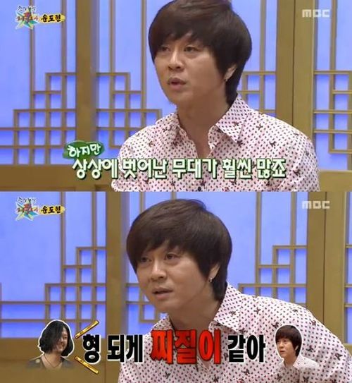 윤도현은 20일 오후 방송된 MBC 예능프로그램 ‘황금어장-무릎팍도사’에서 MC강호동의 "대중성을 무시할 수 없다"는 말에 "허준에 의해 초연해졌다"고 답했다.