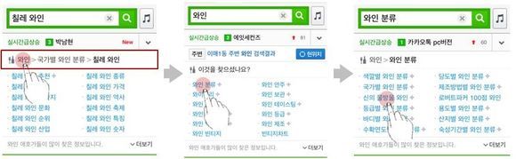 예를 들어 이용자가 ‘칠레와인’이라고 검색할 경우, 기존 연관검색어 대신 스위트 와인과 관련된 정제된 정보들을 볼 수 있고, 상위에는 칠레와인이 해당된 카테고리가 노출돼 해당 주제의 다른 카테고리로 이동할 수 있다.