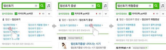 또한 ‘임신’ 등 다소 일반적인 검색어를 입력해도 제시된 디렉토리를 따라 ‘임신초기 증상’에 이어 ‘임신초기 위험증상’ 등과 같은 상세한 정보를 입력할 필요 없이 간편하게 확인할 수 있습니다.