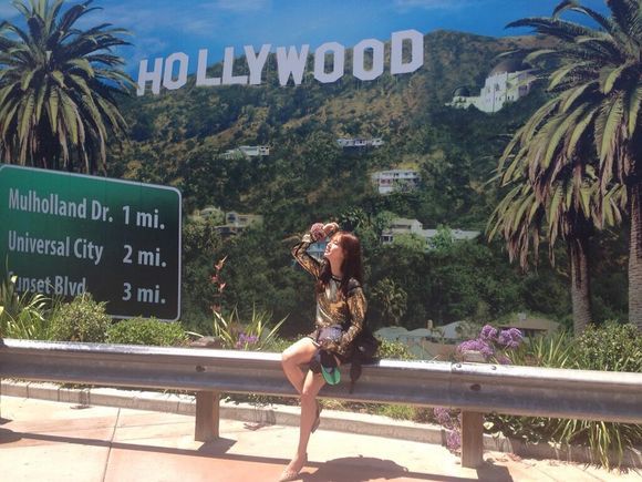사진 속에서 한채아는 헐리우드 간판이 세워진 도로에서 햇살을 받고 있다. 핫팬츠를 입은 한채아의 매끈한 다리 라인도 눈길을 끈다.