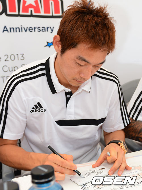 인천 김남일이 경기 시작을 앞두고 열린 팬사인회에서 팬들과의 만남을 갖고 있다.