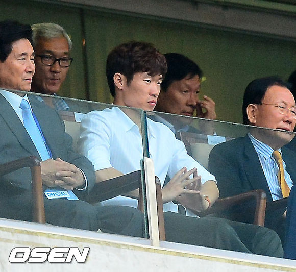 박지성이 귀빈석에서 경기를 지켜보고 있다.
