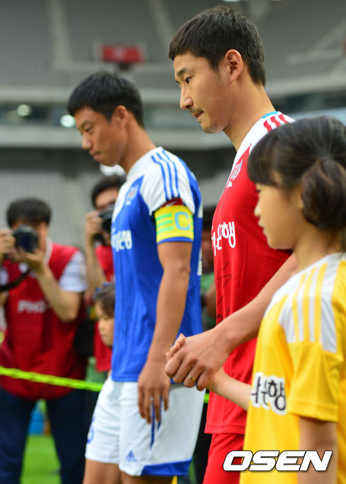 클래식팀 이천수와 챌린지팀 염기훈이 그라운드로 들어서고 있다.
