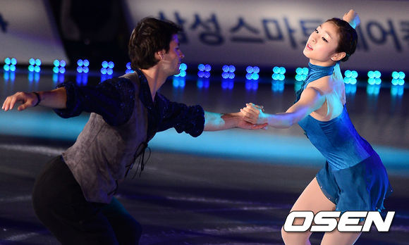 김연아가 스테판 랑비엘과 멋진 연기를 선보이고 있다.