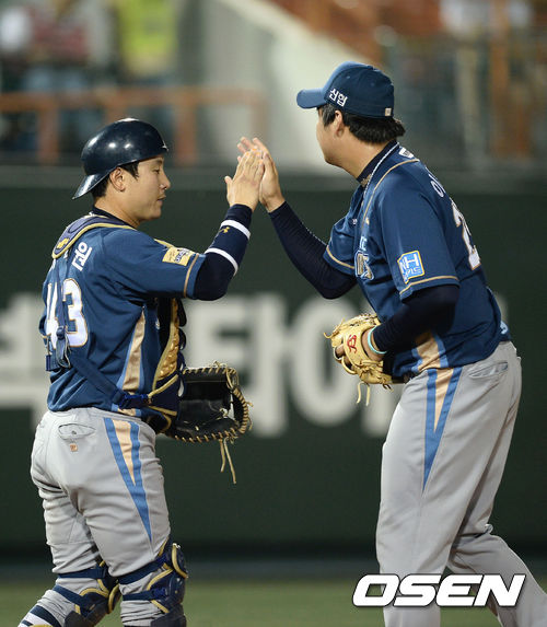 경기 종료 후 NC 이태원과 이민호가 기뻐하고 있다. / youngrae@osen.co.kr