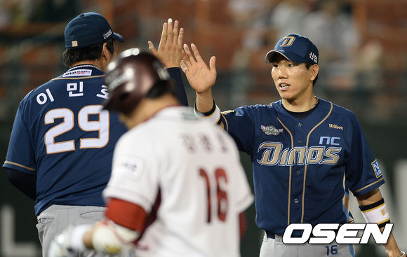 경기 종료 후 NC 이민호와 모창민이 하이파이브를 하고 있다. / youngrae@osen.co.kr